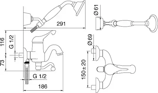 Смеситель Treemme Piccadilly для ванны с душем 2100.DD.PL