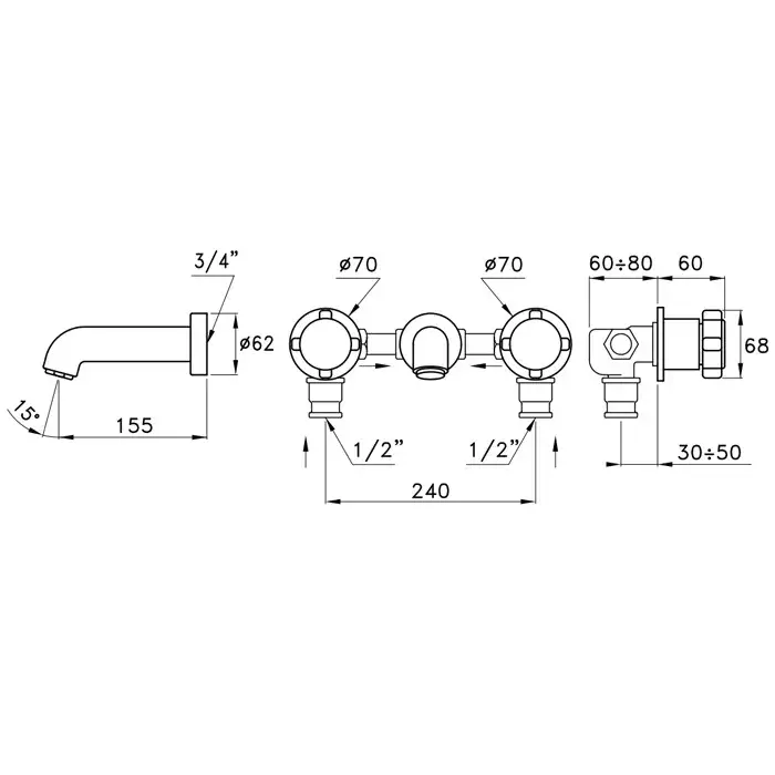 Stella Aster Настенный излив для раковины 863AR 10/30/40 см, цвет хром UN 09003 CR00