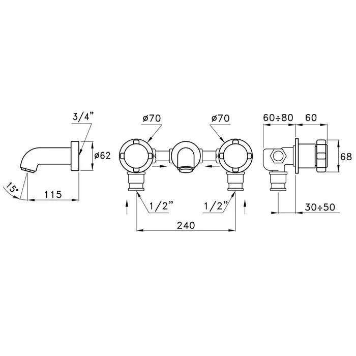 Stella Aster Настенный излив для раковины 863AR 10/30/40 см, цвет хром UN 09003 CR00