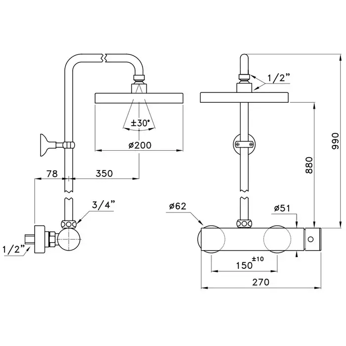 Stella Bamboo Душевая стойка 3283/301-200 с верхним душем 20 см, цвет: хром BT 02414 CR00