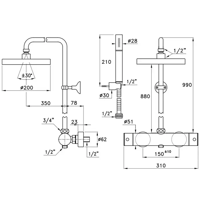 Stella Bamboo Душевая стойка 3287/304-200 с верхним душем 20 см, цвет: хром UN 02610 CR00