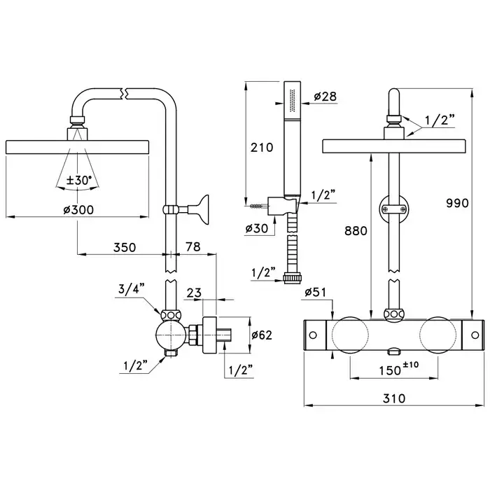 Stella Bamboo Душевая стойка 3287/304-300 с верхним душем 30 см, цвет: хром UN 02611 CR00
