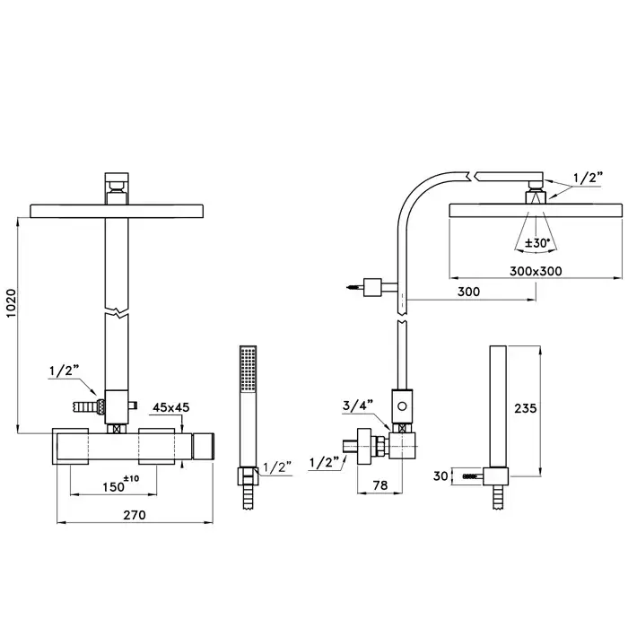 Stella Bamboo Quadro Душевая стойка 3283/420/304-300 с верхним душем 30 см, цвет: хром BQ 02424 CR00