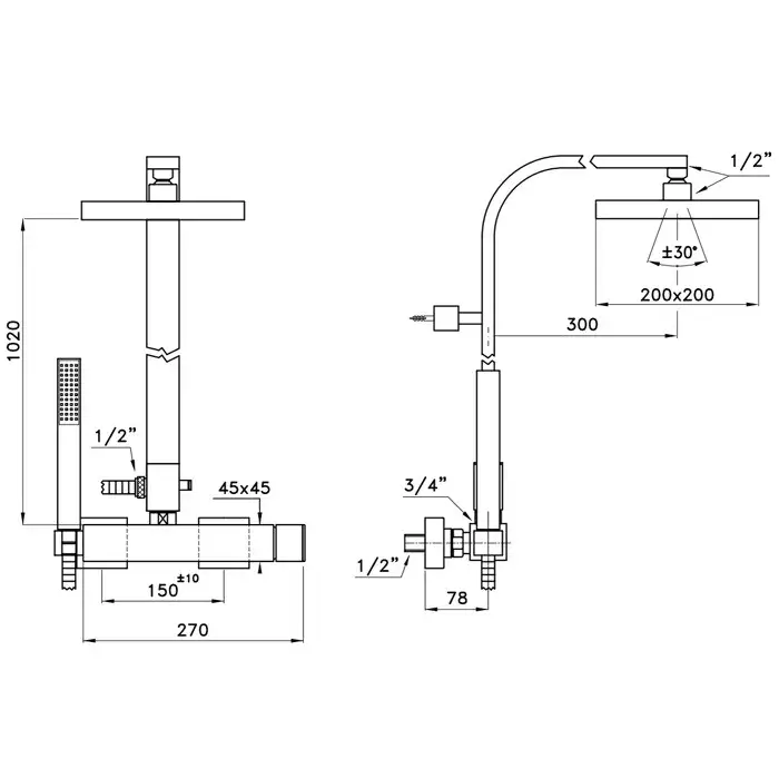 Stella Bamboo Quadro Душевая стойка 3283/420/306-200 с верхним душем 20 см, цвет: хром BQ 02421 CR00