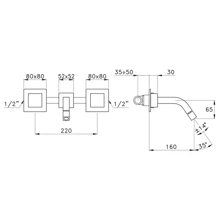 Stella Bamboo Quadro Встраиваемый смеситель для раковины 3868, цвет хром BQ 01005 CR00