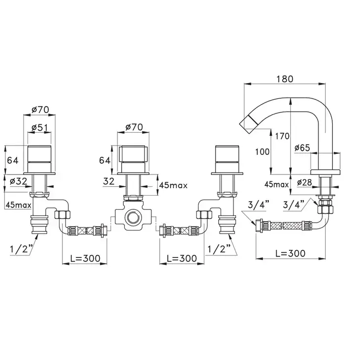 Stella Bamboo Смеситель на борт ванны на 4 отверстия 3256TR, цвет хром BT 02311 CR00