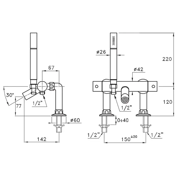 Stella Bamboo Термостатический смеситель на борт ванны на 2 отверстия, цвет хром UN 02102 CR00