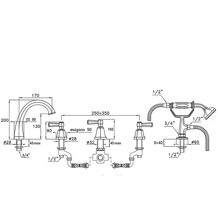 Stella Eccelsa Leve Смеситель на борт ванны на 5 отверстий 3256TR/307, цвет хром EL 02313 CR00