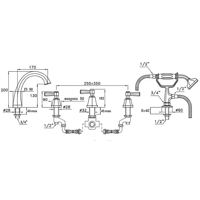 Stella Eccelsa Leve Смеситель для ванны, с ручным душем, цвет: золото 24К EL 02206 AU00
