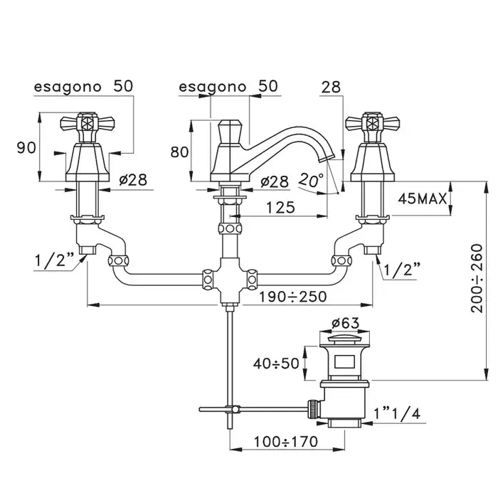 Stella Eccelsa Смеситель для раковины на 3 отверстия 3224, цвет хром EC 00011 CR00