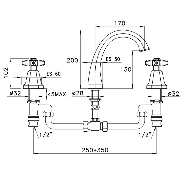 Stella Eccelsa Смеситель на борт ванны на 3 отверстия 3255, цвет хром EC 02306 CR00