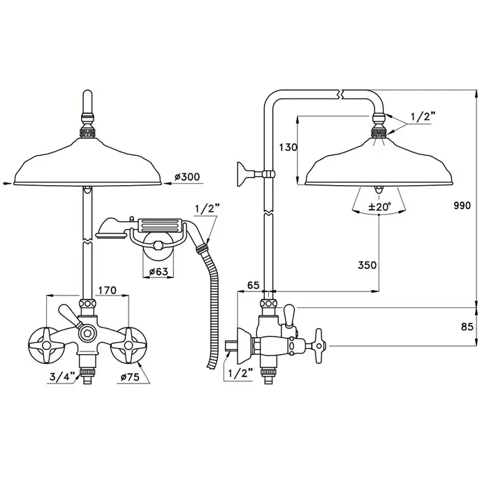 Stella Italica Душевая стойка 3284/33-300 с верхним душем 30 см, цвет: хром IT 02513 CR00