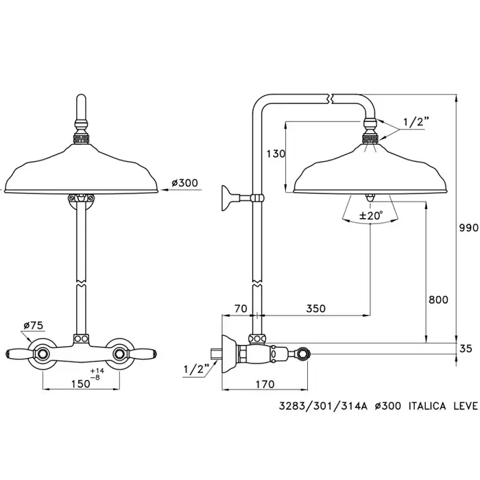 Stella Italica Leve Душевая стойка 3283/301/314A-300 с верхним душем 30 см, цвет: хром IL 02413 CR00