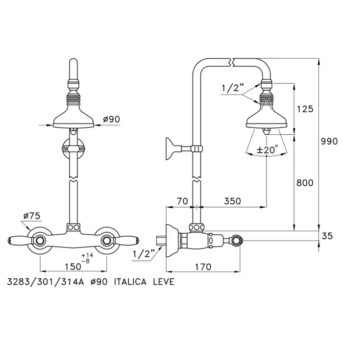 Stella Italica Leve Душевая стойка 3283/301/314A-90 с верхним душем 9 см, цвет: хром IL 02410 CR00