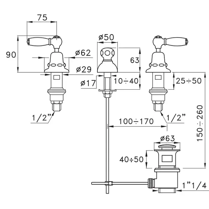 Stella Italica Leve Смеситель для раковины на 3 отверстия 3226, цвет хром IL 00017 CR00