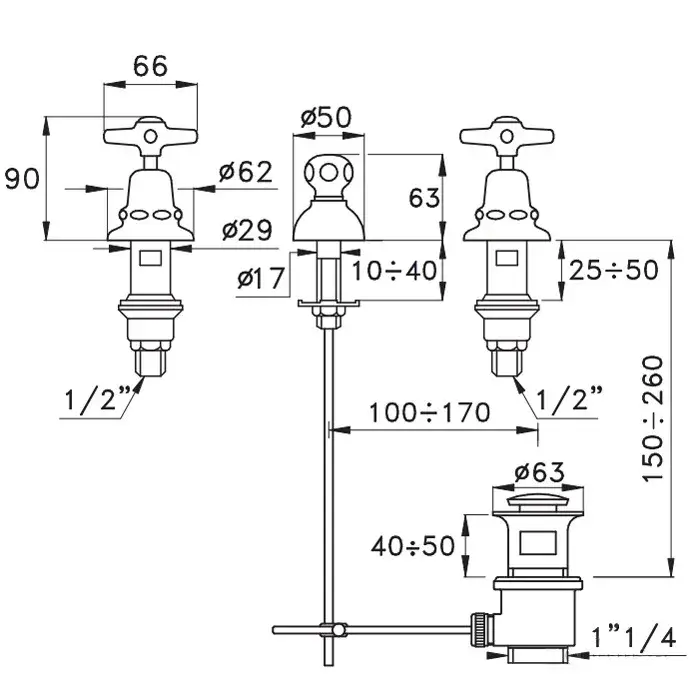 Stella Italica Смеситель для биде на 3 отверстия 3600, без излива, цвет хром IT 00200 CR00