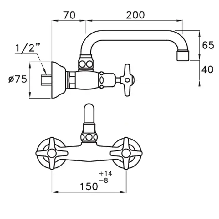 Stella Italica Смеситель для мойки настенный 3245/200, длина излива 20 см, цвет хром IT 04006 CR00