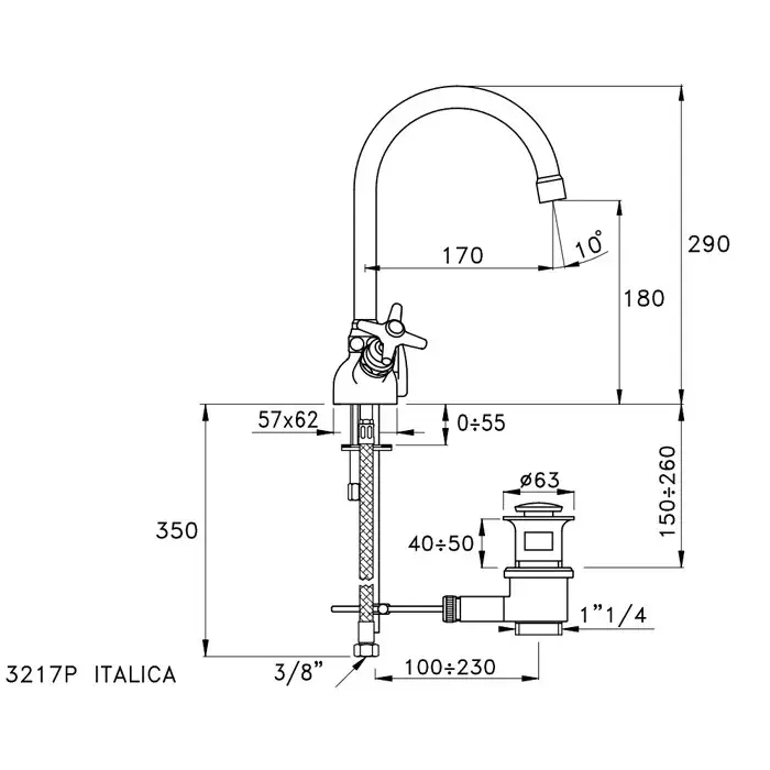 Stella Italica Смеситель для раковины на 1 отверстие 3217P, цвет хром IT 00005 CR00