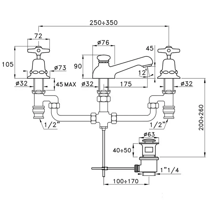 Stella Italica Смеситель для раковины на 3 отверстия 3224P, цвет хром IT 00019 CR00