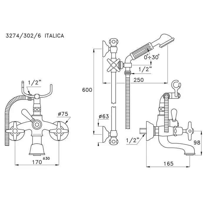 Stella Italica Смеситель для ванны 3274/302/6 со штангой и ручным душем, цвет хром IT 02203 CR00