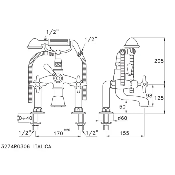 Stella Italica Смеситель на борт ванны на 2 отверстия 3274RG306, цвет хром IT 02207 CR00