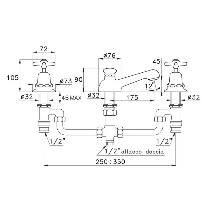 Stella Italica Смеситель на борт ванны на 3 отверстия 3256, цвет хром IT 02300 CR00