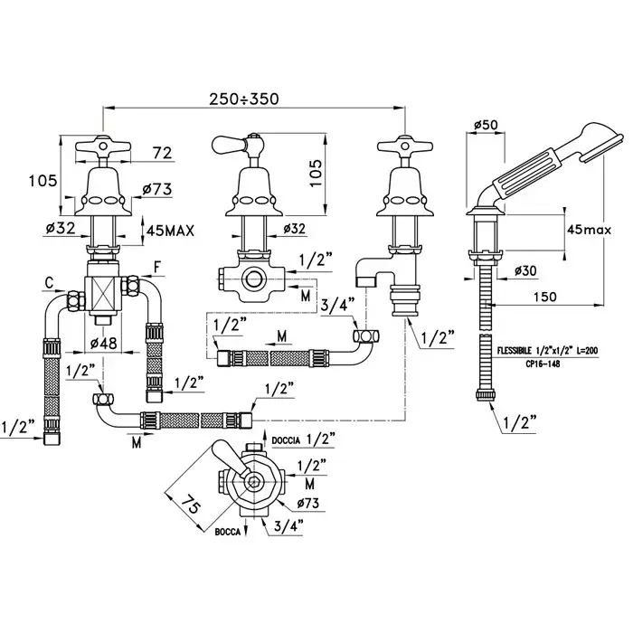 Stella Italica Смеситель на борт ванны на 4 отверстия 3256TRTC/308, цвет хром IT 02305 CR00