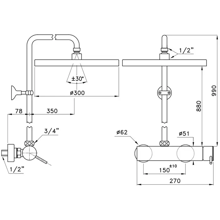 Stella Lucilla Душевая стойка 3283/301-300 с верхним душем 30 см, цвет: хром LL 02415 CR00