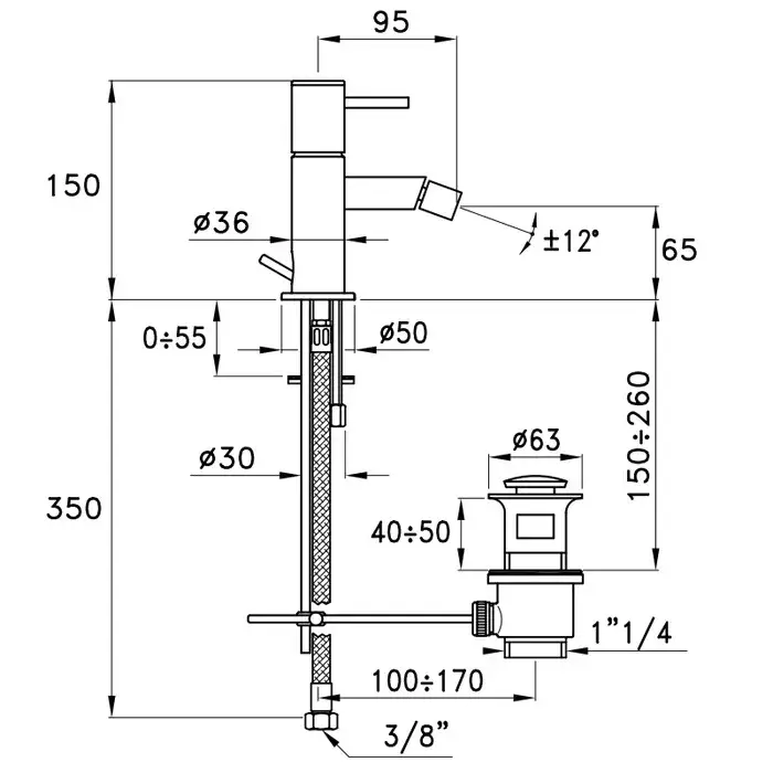 Stella Lucilla Смеситель для биде на 1 отверстие 3604, с донным клапаном, цвет хром LL 00301 CR00