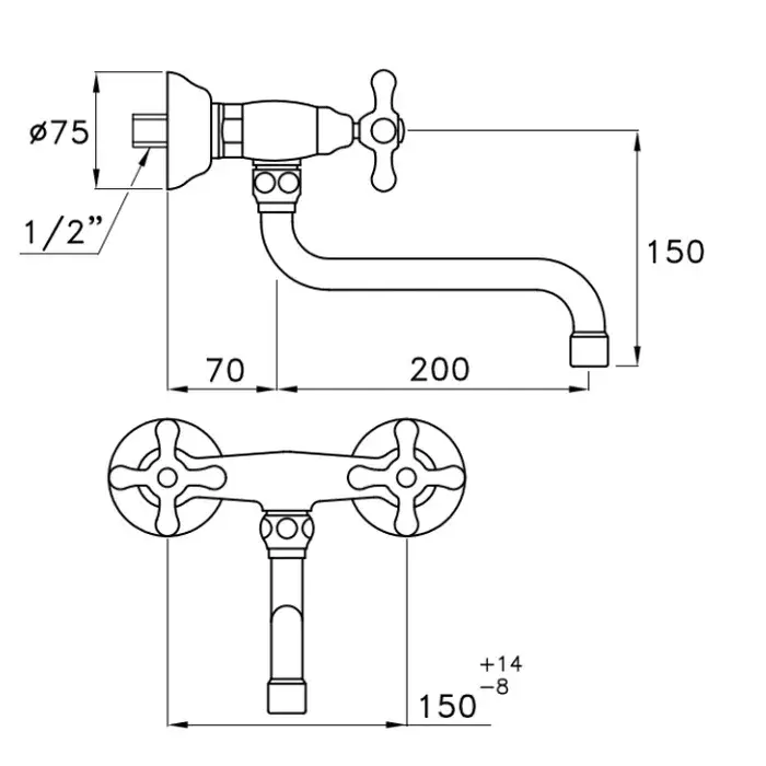 Stella Roma Смеситель для мойки настенный 3243/200, длина излива 20 см, цвет хром RM 04001 CR00