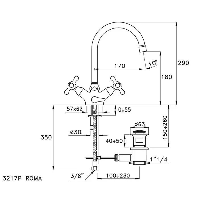 Stella Roma Смеситель для раковины на 1 отверстие 3217P, с донным клапаном, цвет хром RM 00005 CR00