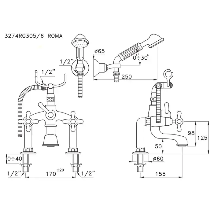 Stella Roma Смеситель на борт ванны на 2 отверстия 3274RG305/6, цвет хром RM 02205 CR00
