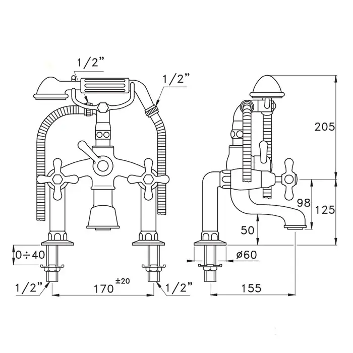 Stella Roma Смеситель на борт ванны на 2 отверстия 3274RG306 с ручным душем, цвет хром RM 02207 CR00