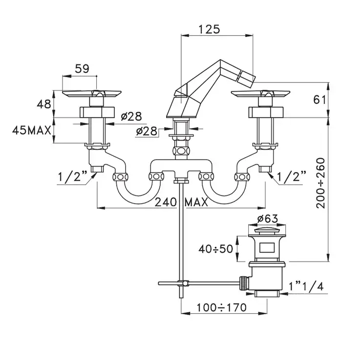 Stella Смеситель для биде на 3 отверстия 3601, с донным клапаном, цвет хром ST 00201 CR00