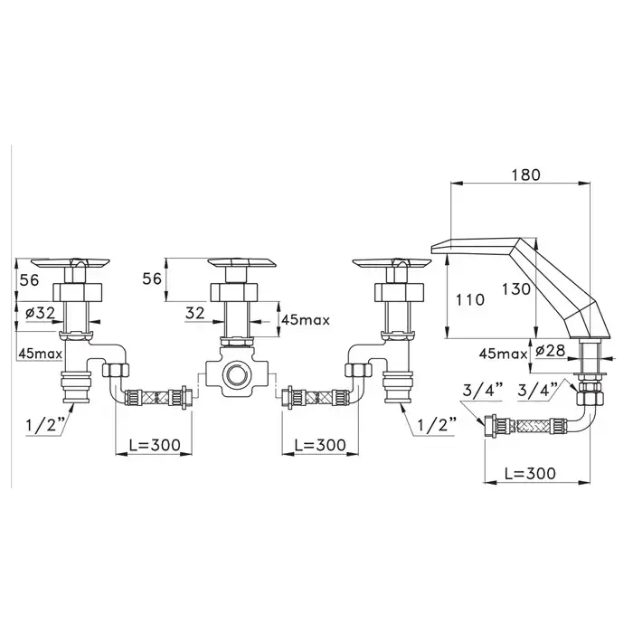 Stella Смеситель на борт ванны на 4 отверстия 3256, цвет хром ST 02300 CR00