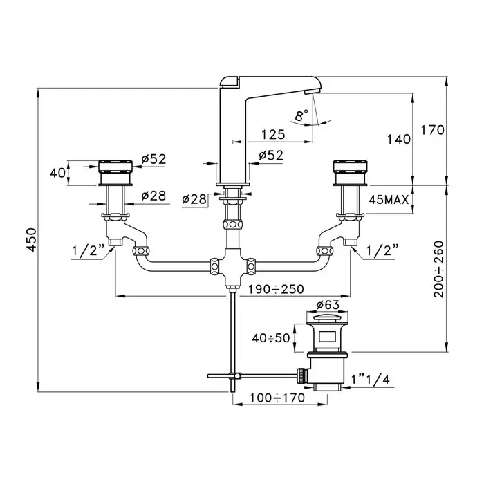 Stella Timeaster Смеситель для раковины, на 3 отверстия, цвет: хром TA 00011 CR00N