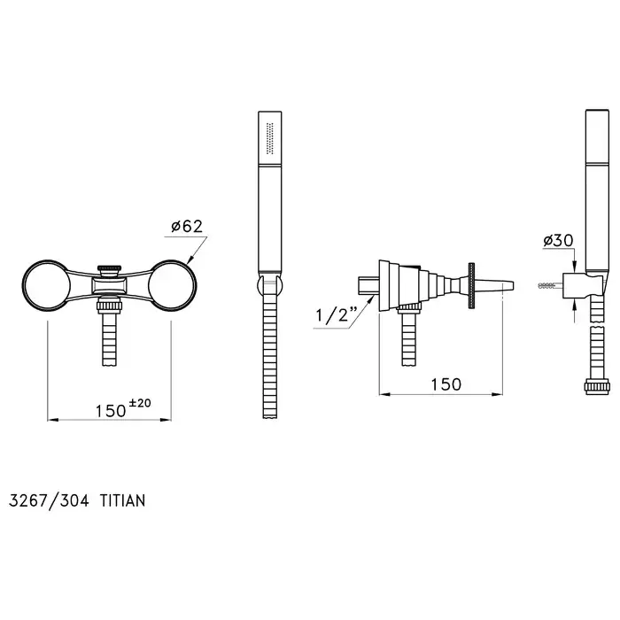 Stella Titian Смеситель для ванны 3267/304 с ручным душем, цвет хром TT 02008 CR00