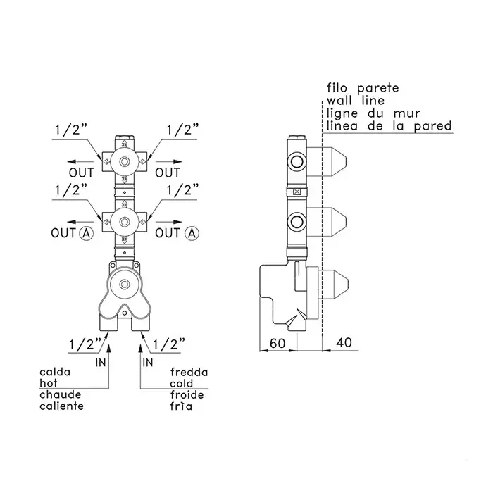 Stella Встраиваемся часть термостатического смесителя для душа на 2 источника UN 06004 0000