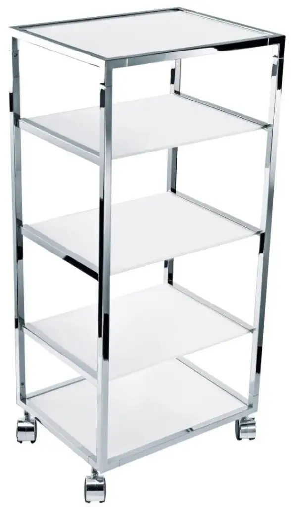 Стеллаж на роликах 38*30*h80, структура - хром, полки - белое стекло