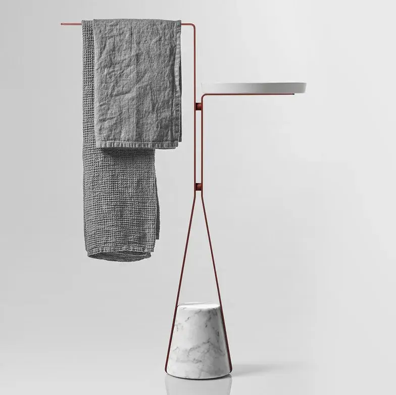 Antonio Lupi Halo Полотенцедержатель напольный 46х24х64см., база из мрамора Carrara satinato, столешн белая из Flumood, структ Veneziano goffrato
