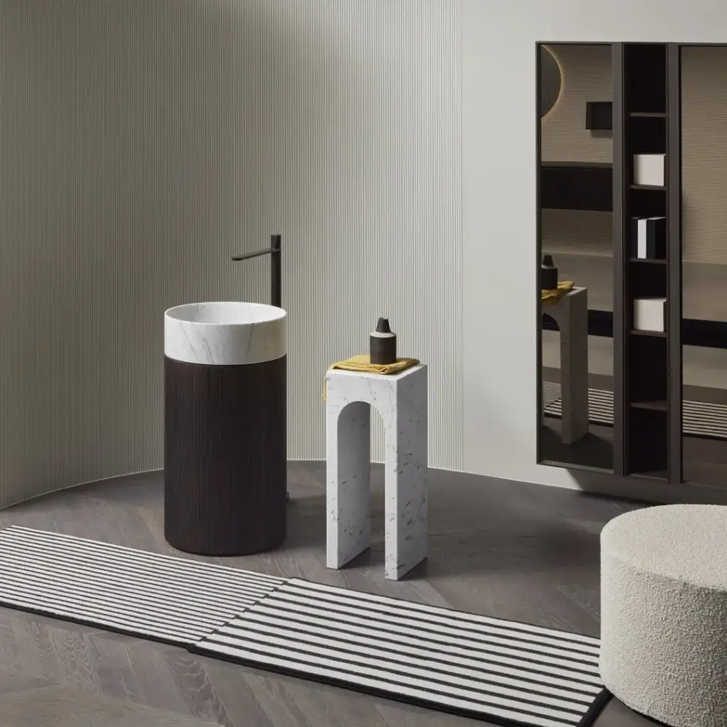 NOORTH milldue edition ROMA III Раковина 45х88 см, без отв., напольная, без перелива, с донным клапаном, цоколь фрезерованный Bianco Carrara, цвет: Bianco Carrara/Moka Cream