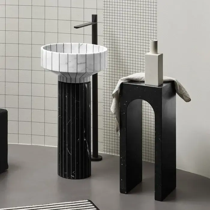 NOORTH milldue edition ROMA III Раковина 45х88 см, без отв., напольная, без перелива, с донным клапаном, цоколь фрезерованный Bianco Carrara, цвет: Bianco Carrara/Moka Cream