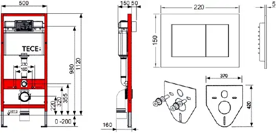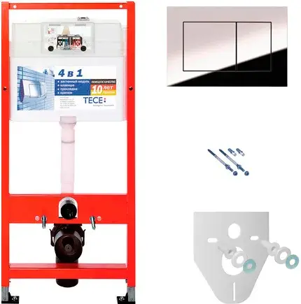 Tece Base Инсталляция для унитаза 4 в 1 с кнопкой смыва, креплением и шумоиз., цвет: хром глянцевый 9400412