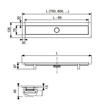 TECE Комплект TECElinus для монтажа дренажного канала 900мм с основой для плитки "tile" и панелью "steel" 2 в1 (ПРОДАЕМ только с нашего склада!!!)