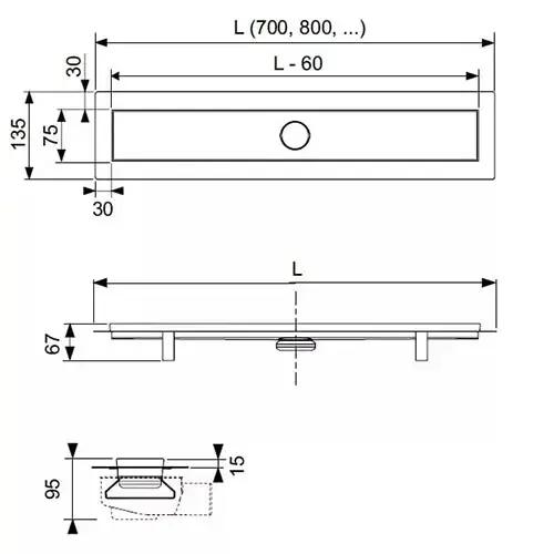 TECE Комплект TECElinus для монтажа дренажного канала 900мм с решеткой "straight" (ЦЕНА по акции с нашего склада!)