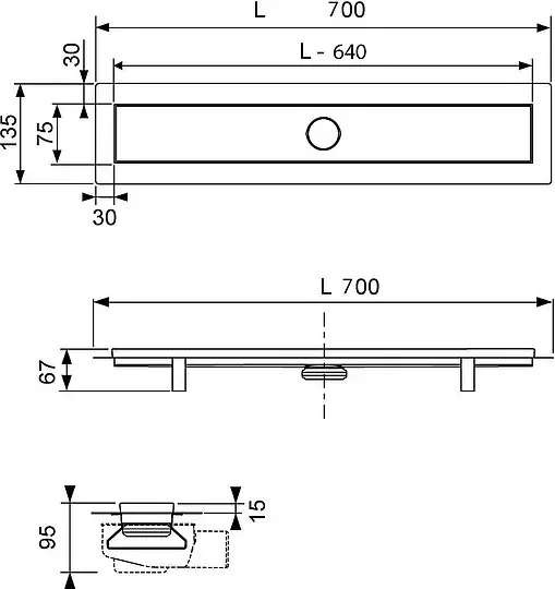 Tece Linus Дренажный канал из нержавеющей стали: основа для плитки tile, решетка steel 70 см 15103079