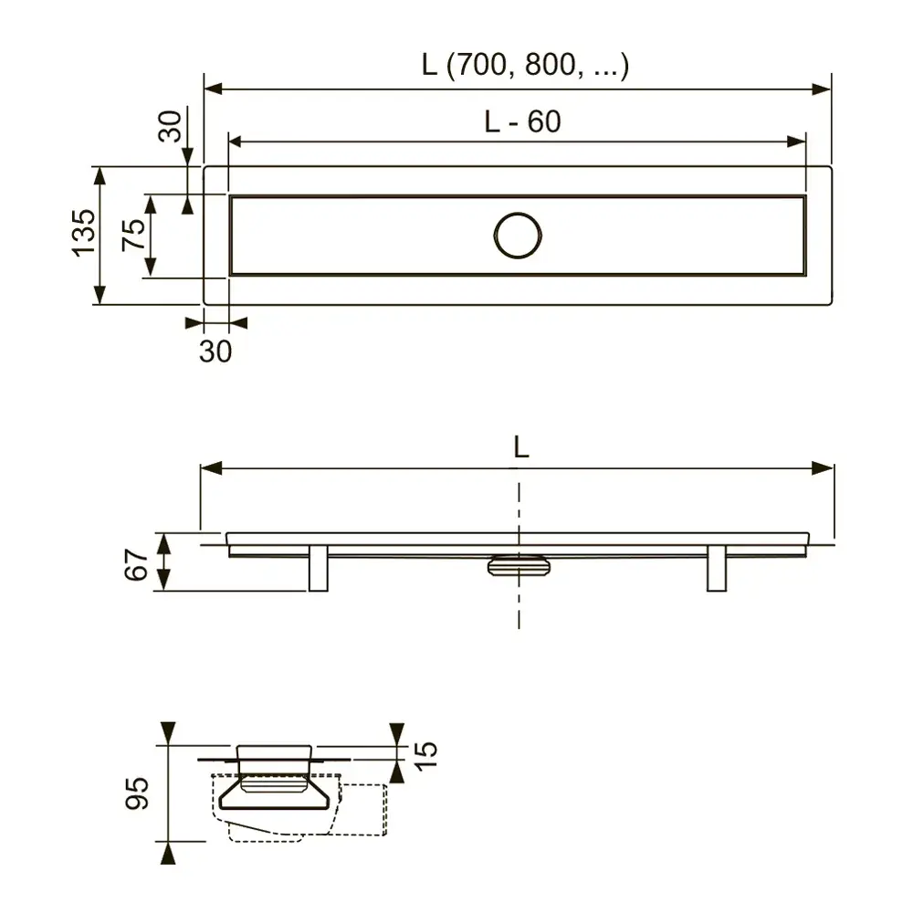 Tece Linus Дренажный канал из нержавеющей стали: основа для плитки tile, решетка steel 60 см 15103069