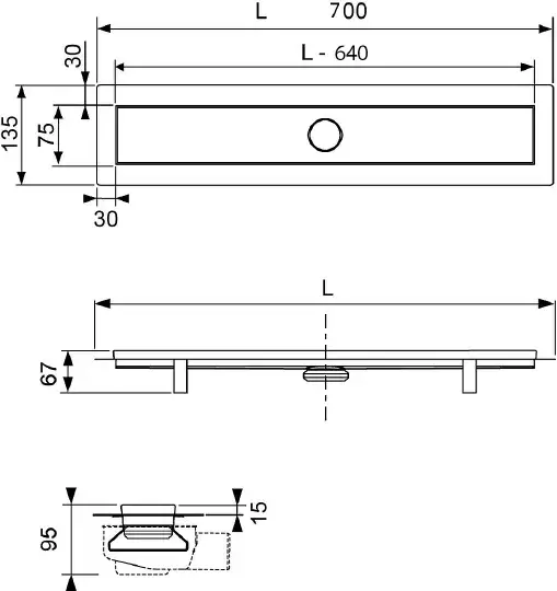 Tece Linus Дренажный канал из нержавеющей стали с декор. решеткой straight 70 см, цвет: хром матовый 15100079