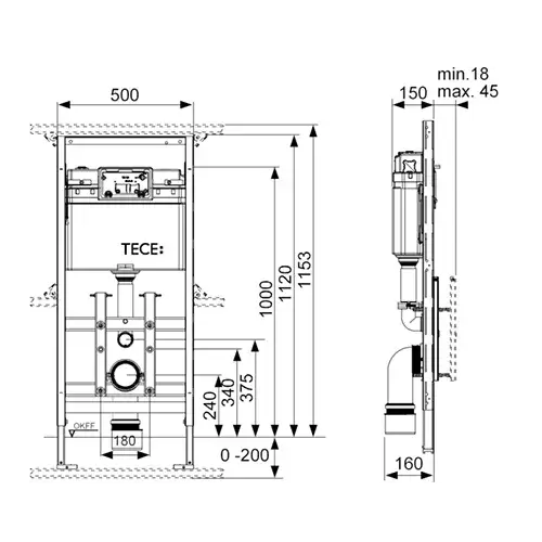 Tece Lux Инсталляция для унитаза h112 см, с регулировкой высоты, без крепления 9600200