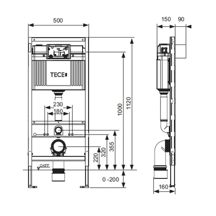 Tece Profil Инсталляция для унитаза со сливным бачком Octa II, 9 см, с комплектом крепления 9300500